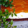 Następnie zabieramy się za sernik. Żelatynę rozpuszczamy w niewielkiej ilości gorącej wody (około 1/3 szklanki), dokładnie mieszamy, aż się rozpuści i odstawiamy do wystudzenia. Później ubijamy szklankę śmietany kremówki wraz z cukrem pudrem na sztywno. Następnie dodajemy stopniowo serki homogenizowane cały czas mieszając. Do masy serowej dodajemy zimną żelatyną i całość dokładnie mieszamy.Gotową wykładamy na ciasto i chowamy do lodówki, żeby szybciej stężało.