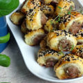 Następnie bagietki kroimy pod skosem na małe kromeczki. Każdą z nich smarujemy masłem i układamy na niej boczek i plaster oscypka. Następnie układamy je na wyłożonej papierem do pieczenia blaszce. Pieczemy w 200°C, aż ładnie się zarumienią około 8-10 minut.