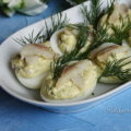 Oczywiście na początku jajka gotujemy na twardo i obieramy. Każde z nich przecinamy na pół i wyciągamy żółtka. Następnie żółtka rozgniatamy widelcem. Dodajemy majonez, koperek, wasabi i pieprz. Wszystko dokładnie mieszamy.