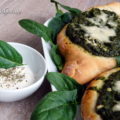 Podajemy gorące w towarzystwie różnych dipów lub sosów np. z sosem czosnkowym, tzatzikami lub raitą miętową. U mnie w towarzystwie tzatzików po polsku.