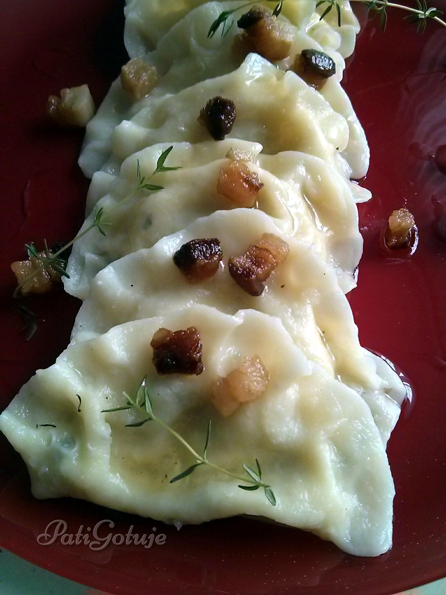 Na koniec polewamy je roztopionym masłem, kwaśną śmietaną i lekko posypujemy cukrem.